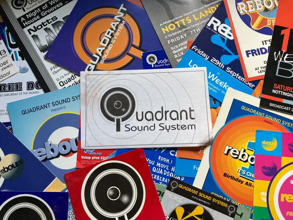 Quadrant Sound System – a bunch of party folk born out of Rave culture and the Midlands free party scene. The Quadrant crew hit the scene in 1995, putting on parties in and around Notts. A coming together, of like minds. & great friendships. We started out in the Summer of 1996, built a 10k rig in the living room, & took on the baton to push the underground house scene to a warehouse, club & wherever we could… By 97/98 we were packing clubs with our legendary Rebound parties, & a year later we headed to Prague, Czech Republic with our infamous fire engine (our sound system crew mobile) and many boxes of records!